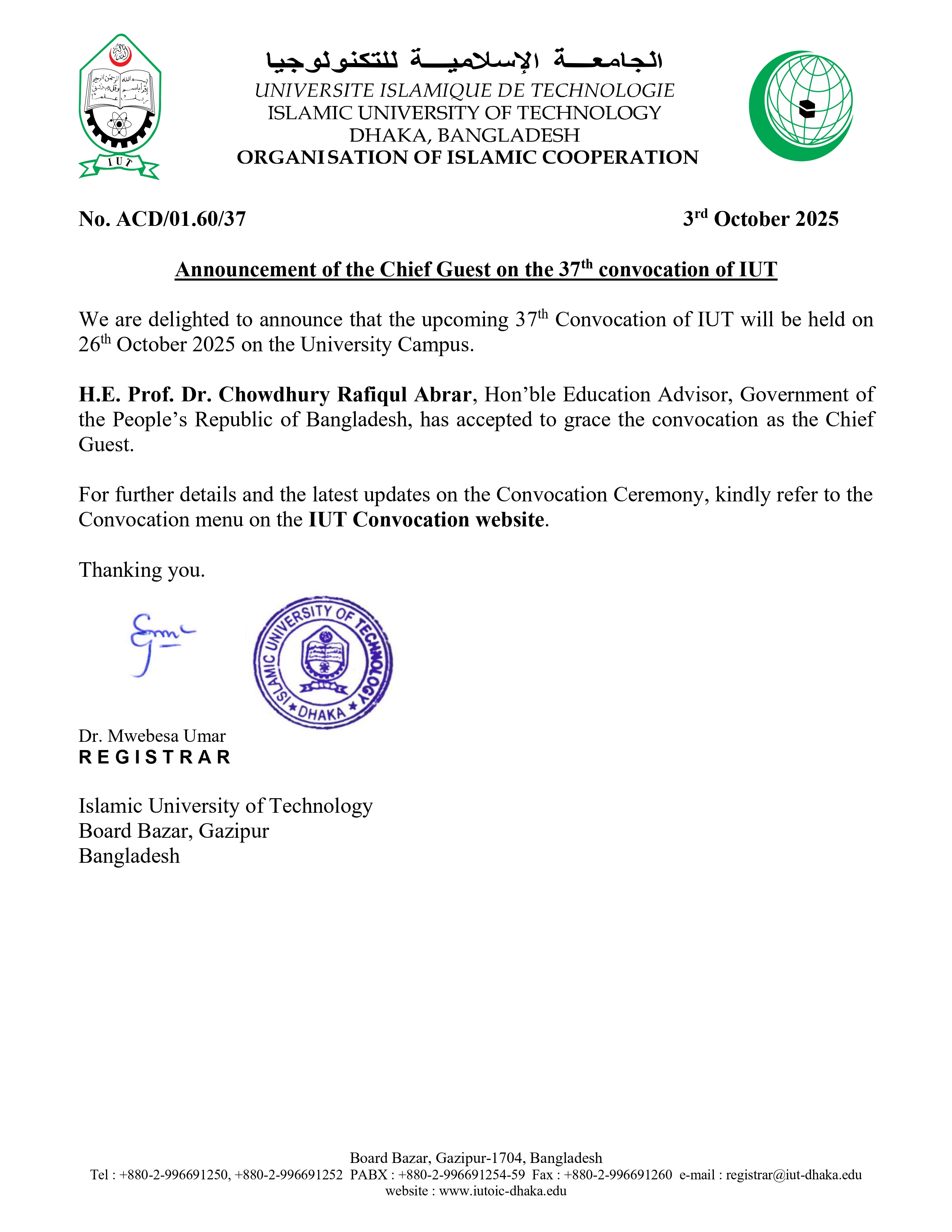 Announcement of the Chief Guest on the 37th convocation of IUT